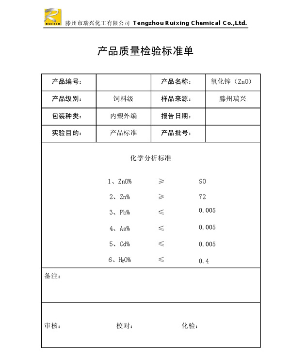 瑞興化工有限公司是生產氧化鋅的重點企業,于2008年通過ISO9001:2008質量管理體系認證。“瑞興”牌氧化鋅在國內擁有較大穩定的市場,并遠銷東南亞、中東、中南美等國家和地區,在國內外享有較高聲譽。